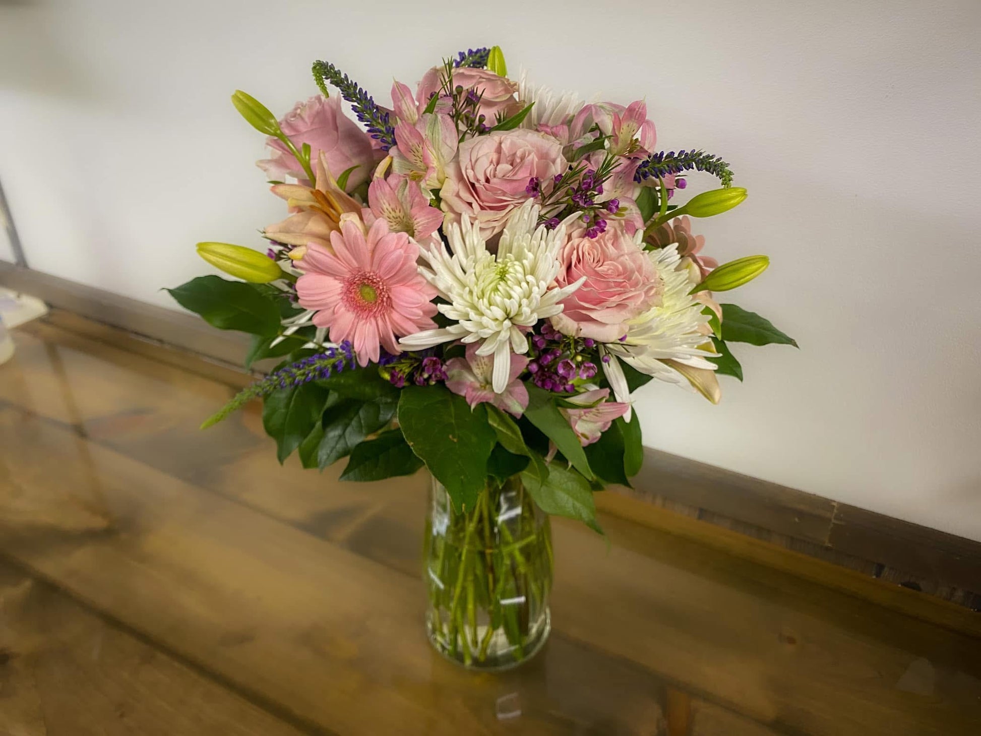 Experience the beauty of changing seasons with our Designer Choice arrangement. Handcrafted with a variety of seasonal blooms, each piece is unique and adds a touch of nature's elegance to any space. Let our expert designers make the perfect arrangement for you.
